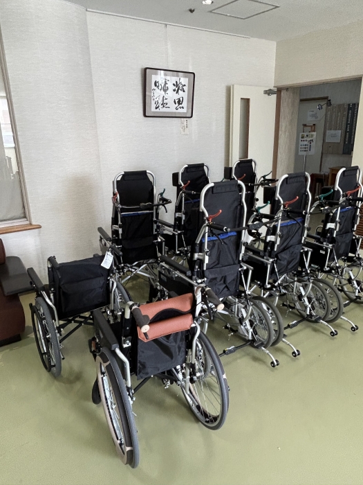 2026/3/12利用者様により安心して過ごしていただけるよう、当施設では新たに自動ブレーキ型車椅子を4台、リクライニング型車椅子を6台導入しました。